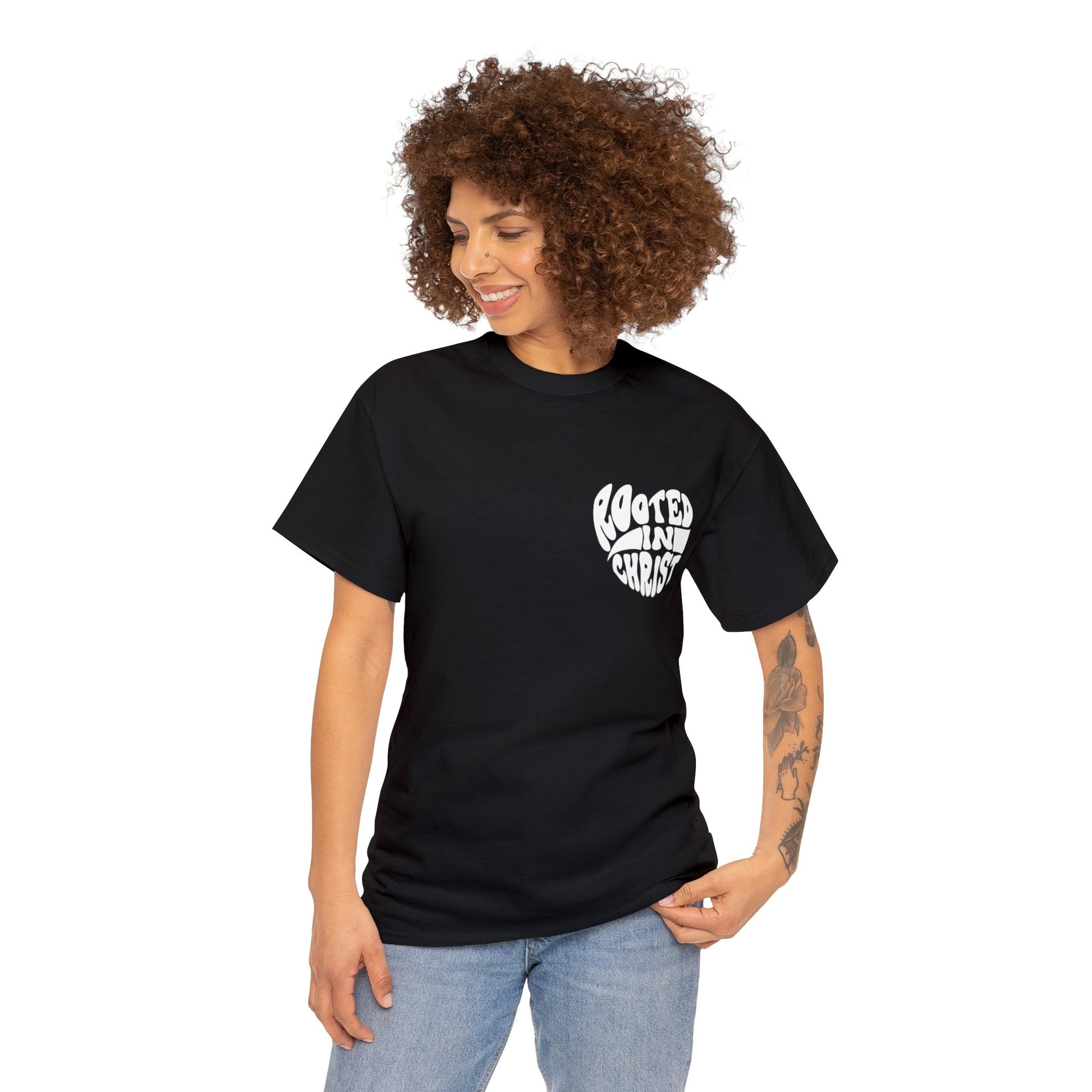 Our Rooted in Christ Tee is a reminder in referring to scripture Colossians 2:7 to continue to live your life rooted in and built up in Christ. A reminder that when our lives are built upon his foundation, we stand firm in Christ and his word. No matter what it may look like with our physical eyes, we are grounded and planted in solid grounds. Our faith is deeply rooted in his truth.